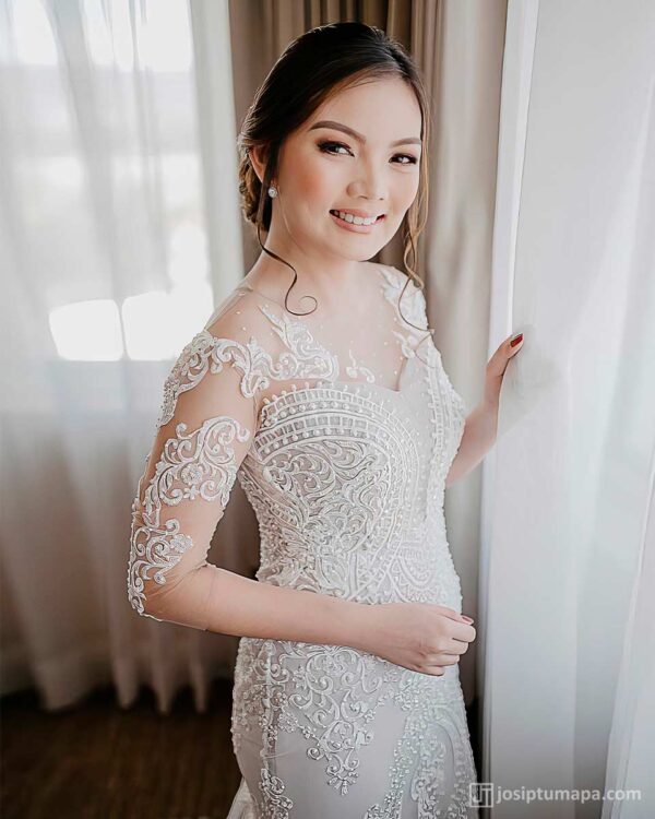 Bespoke lace bridal gown by Josip Tumapa with a figure-enhancing silhouette